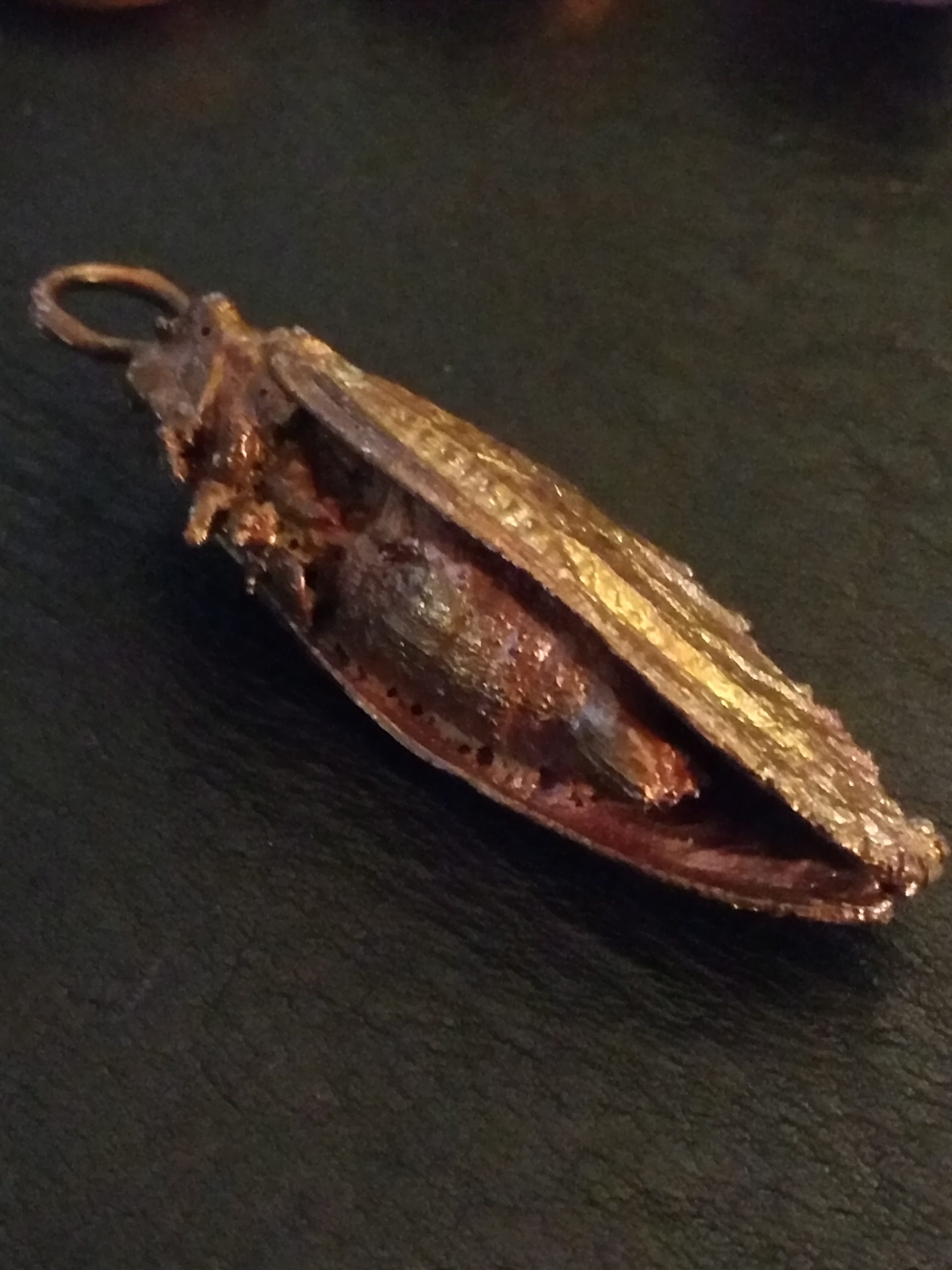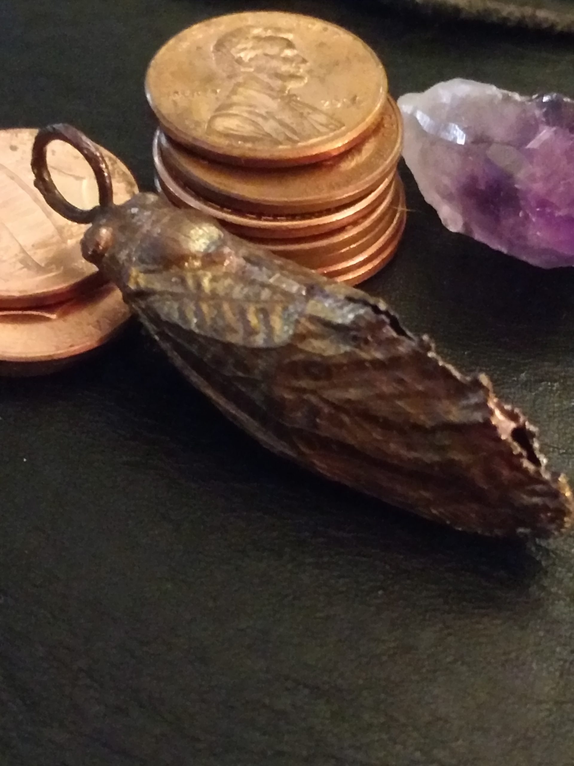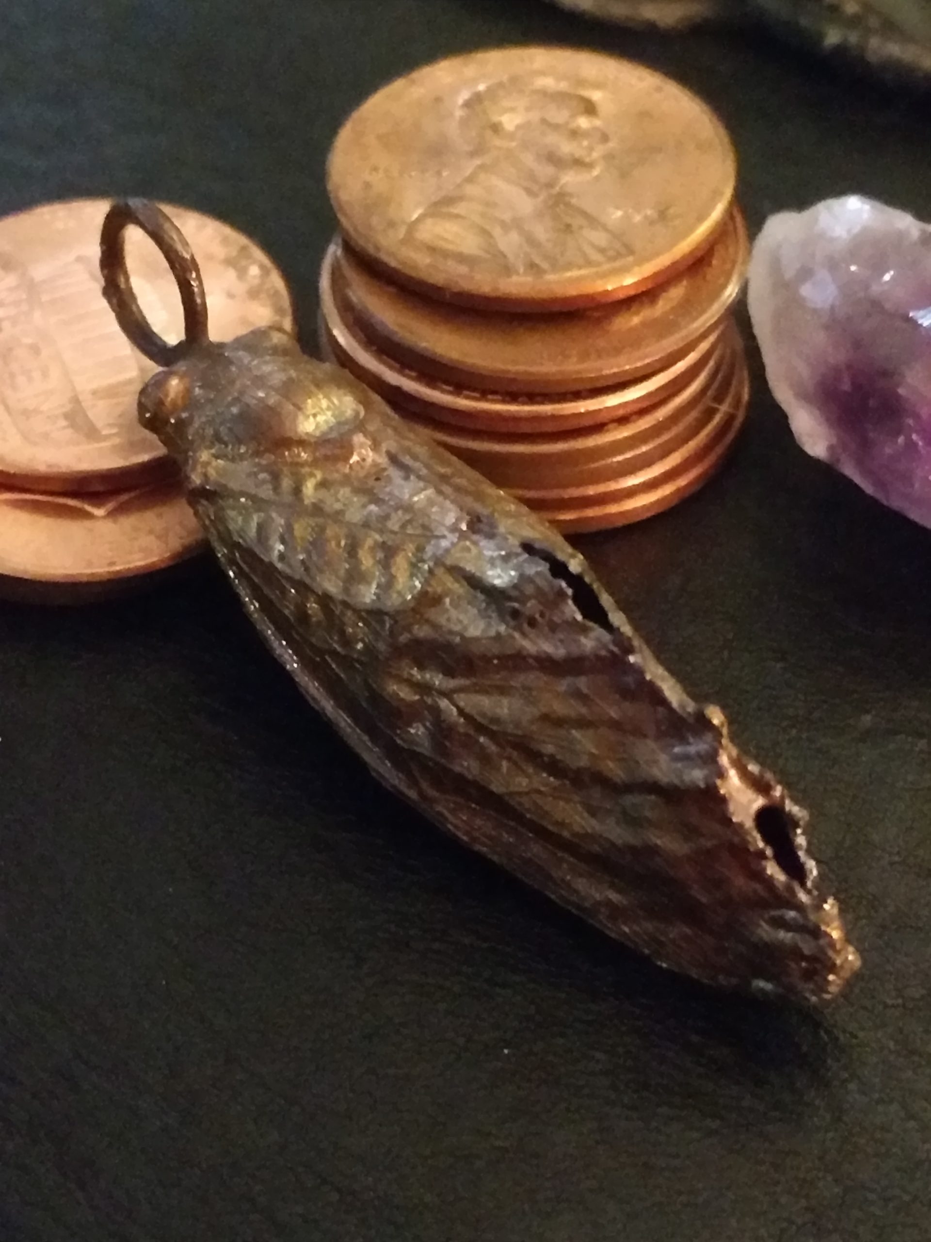 Do you remember the 17-year cicada infestation that we had a few years ago? Well now you can wear one around your neck. Real cicada, plated and copper and treated with a dark patina