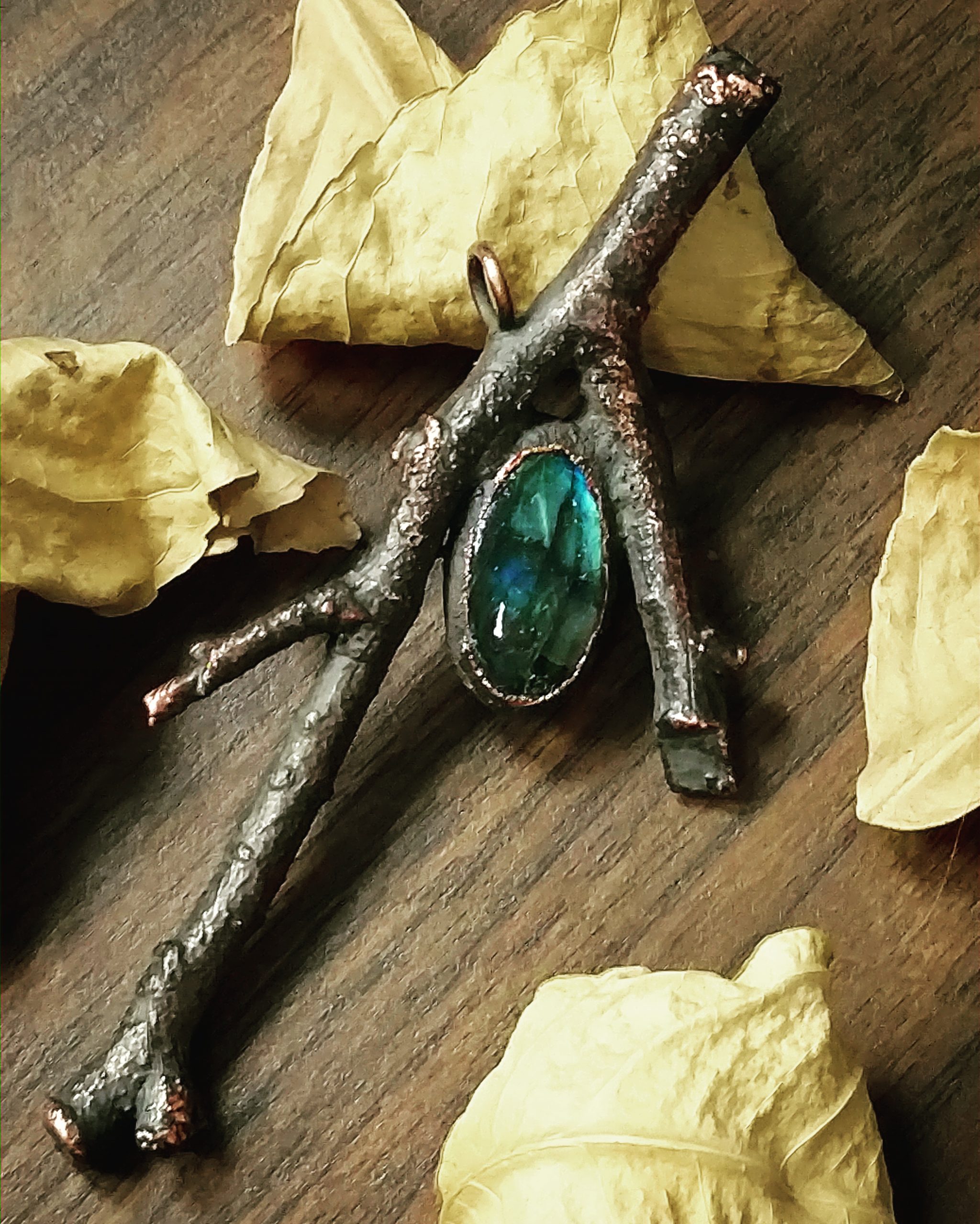 Electroforming is an electrochemical process where copper is dissolved from one object and deposited on another. I source my copper “donor” materials from a plumbing company, so their waste product is actually recycled into my pieces.